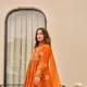 Rust Orange Bandhani Mul Cotton A Line Handwork Suit